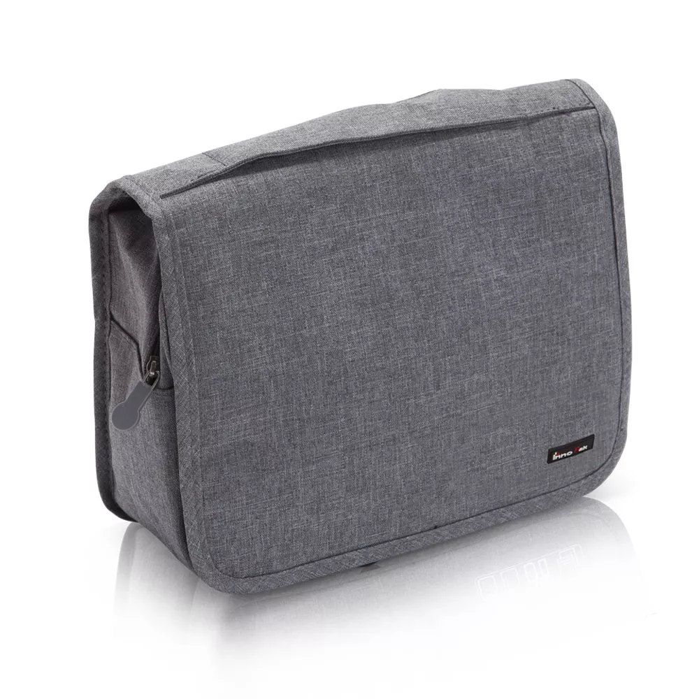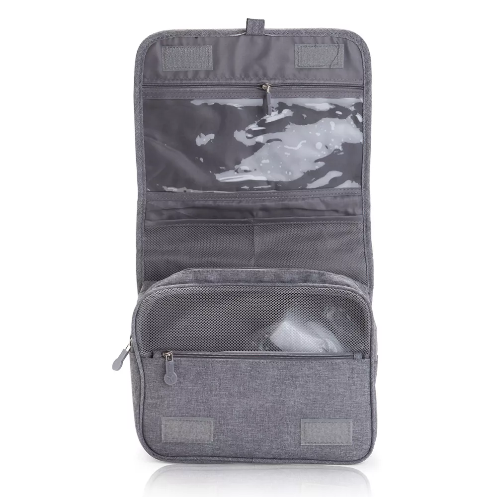 תיק רחצה אופנתי עשוי בד מלאנז' הנפתח ל-3 חלקים עם וו תליה וידית נשיאה 21X10X27 ס"מ